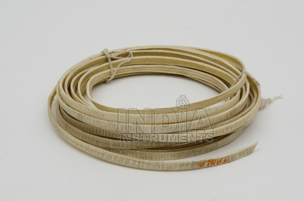 We carry traditional rawhide straps made of buffalo skin. This organic material varies slightly in thickness, width and stretch. We check it for thin spots and visible defects. Our straps are cut to a length of about 11 metres / 36 feet- sufficient for a tabla or a baya. Standard width is 9 to 10 mm and standard thickness is approx. 2 mm. We can supply other sizes for Khol, Pakhawaj or Mridangam on request.