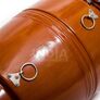 In traditional dholaks animal skin drum heads react very strongly to fluctuating temperature and humidity and must therefore be adjusted constantly. Moreover traditional drum heads wear out and therefore have to be replaced again and again with great effort. And vegans and vegetarians are bothered by the fact that animals are killed to produce the drum heads. All these problems are solved by Karunya's S.R.I. (Synthetic Indian Rhythm) dholak, which is made entirely of synthetic materials and has a stainless steel tuning mechanism. The synthetic skins are so water-repellent that you can even wipe them with a damp cloth for cleaning. The easy to use tuning mechanism allows a very precise and very durable tuning. If a drum head is damaged or worn out after many years of playing, it can be replaced quickly and easily.