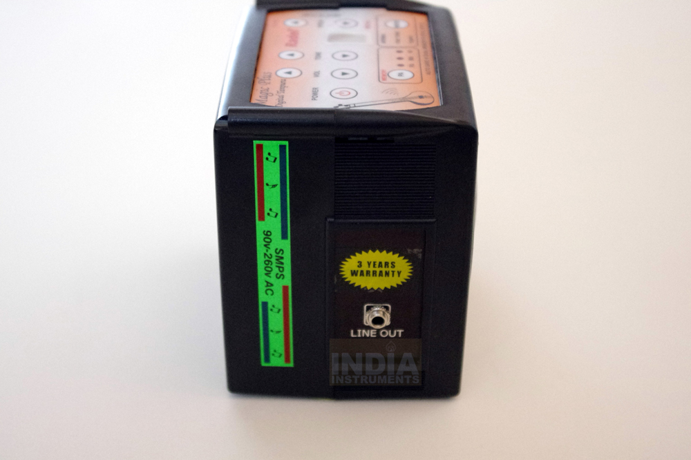 The sample technology of all Saarang e-tanpuras is identical. The audible sound therefore depends upon the integrated speakers. Saarang Magic has only one small speaker, therefore the sound is mono and relatively thinner compared to other Saarang versions.
