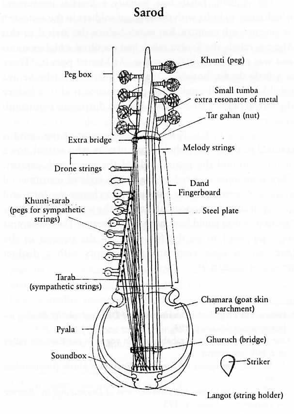 The sarod developed till nineteenth century was probably smaller in size and did not have a good tonal quality. S.M. Tagore says that it is somewhat 'hard' and not as sweet sounding as the been, sitar or rabab.