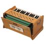 The Aarohi S32 is a good travel harmonium for accompanying mantra singing, chanting, yoga and relaxation. Its compact Delhi-style design, with a pine wood case and simple slotted keys, makes the Aarohi S32 particularly light, handy and robust – and therefore ideal for travelling. The wood is only lightly stained, retaining its natural appearance with individual grain patterns. Without potentially troublesome extras such as octave coupling, folding mechanism, register separation and drones. The sound, feel and appearance convey lightness and joy. Well suited for beginners.