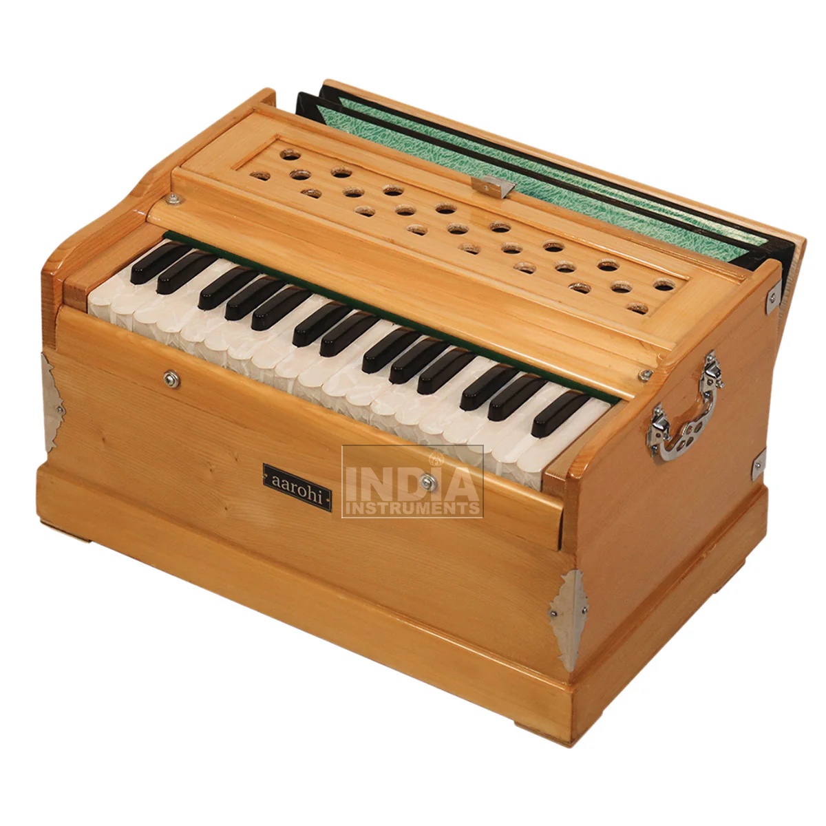 Aarohi harmoniums are manufactured in northern India by suppliers of the Bhava brand. Detailed information about Bhava.