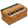 Delhi-style construction with simple stick keys and pine wood case. Without potentially troublesome octave coupling and unnecessary lid – making it relatively light, robust and easy to transport. The wood is only lightly stained, retaining its natural appearance with individual grain patterns. The sound, feel and appearance convey lightness and joy. Well suited for beginners.