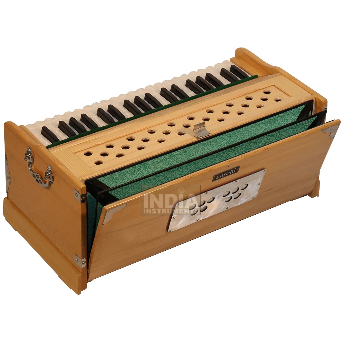 Aarohi harmoniums are manufactured in northern India by suppliers of the Bhava brand. Detailed information about Bhava.