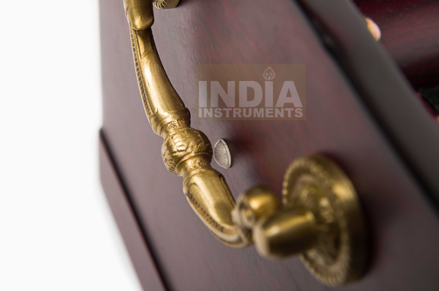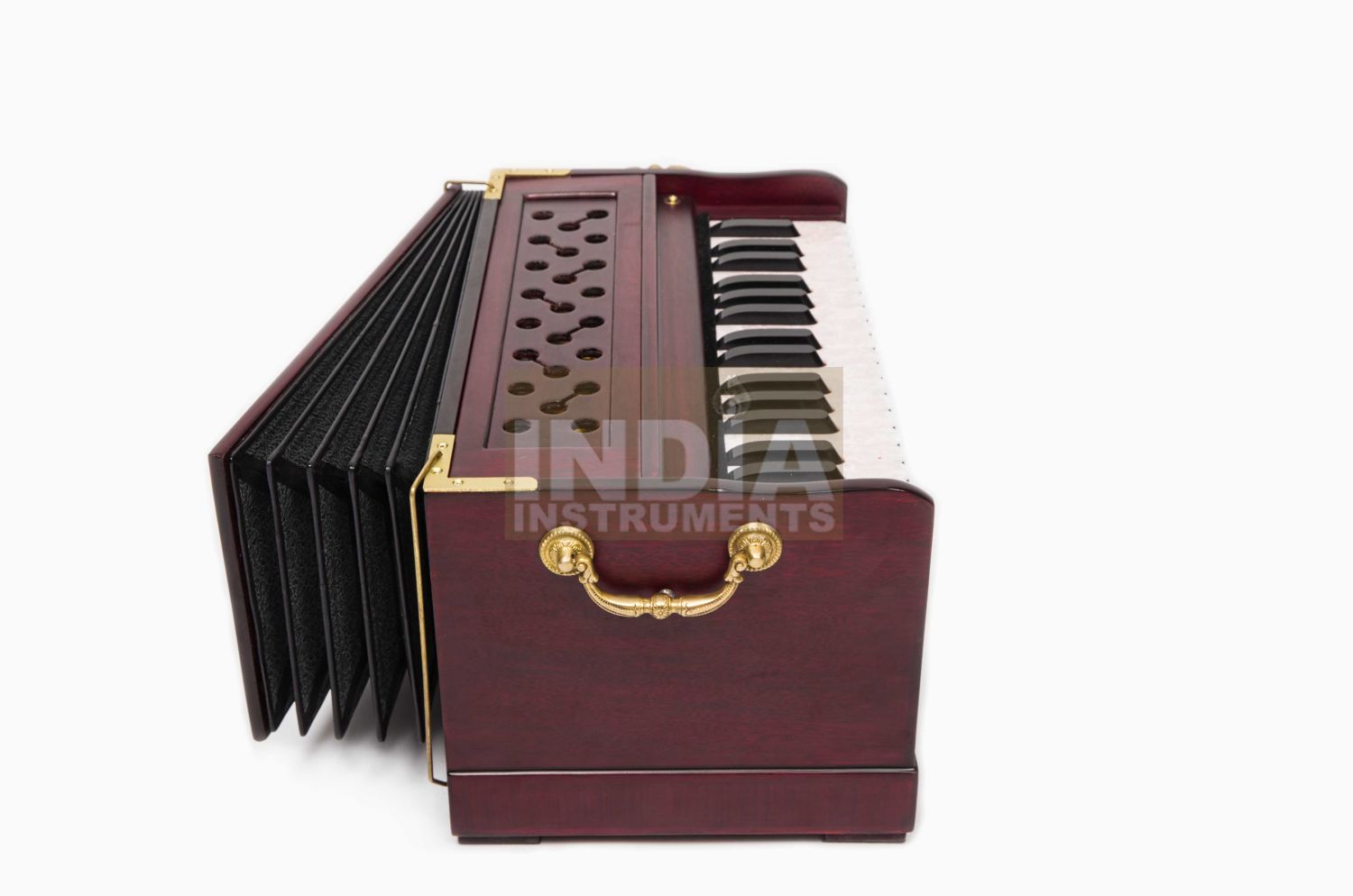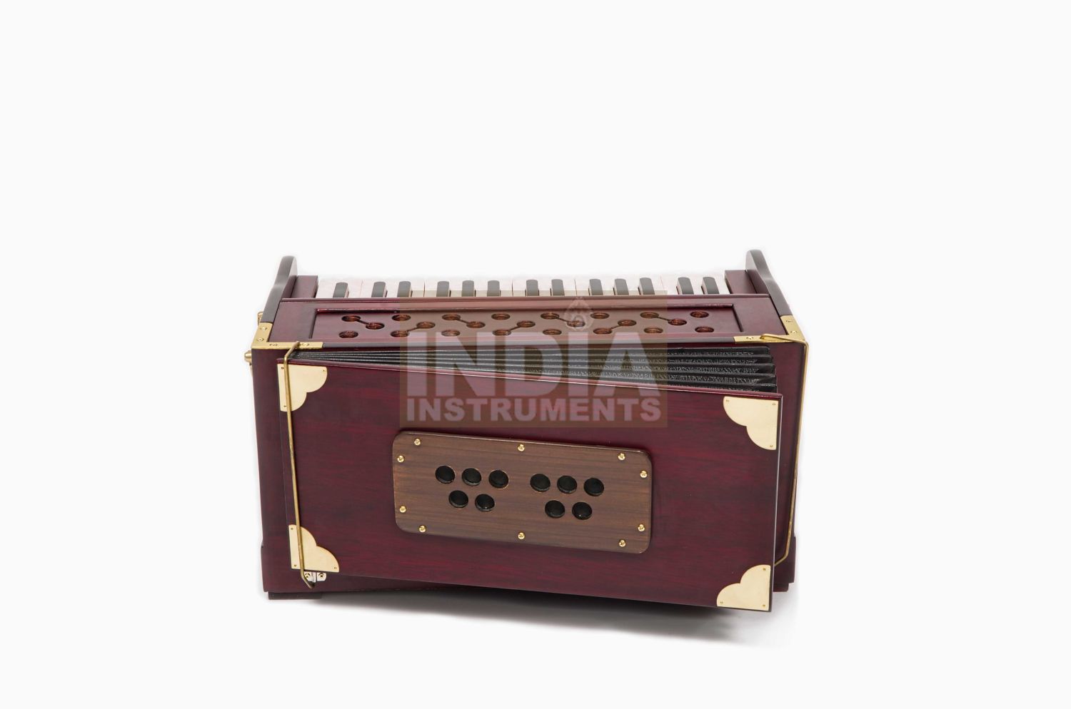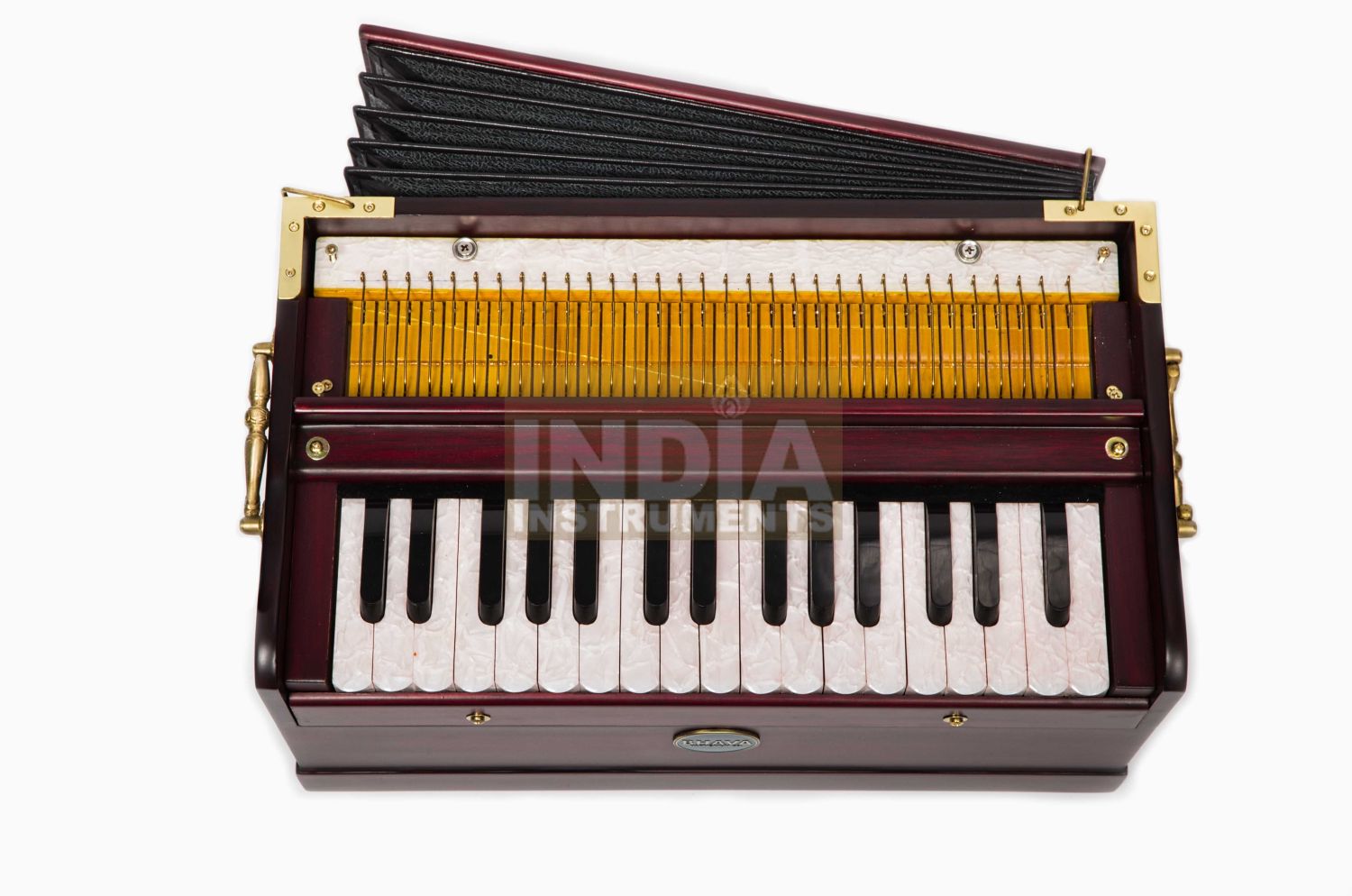 In India, our harmoniums are tuned to international concert pitch of a = 440 hertz. In Europe, however, they usually sound slightly higher at a = 441 to 442 Hertz due to the colder climate. The difference is small and not necessarily noticeable even to trained ears.
