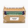 Pine wood is the first choice for harmoniums around Delhi and in North Western India. It is much softer than teak wood, which is more common in Mumbai and Calcutta. Therefore pinewood harmoniums often get little dents or scratches during manufacturing, storage or transit to Europe. Such marks are a natural property of the wood and can not be seen as flaws or defects.