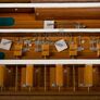 Air temperature and blowing pressure influence the vibration frequency of harmonium reeds. At higher temperature and higher pressure, it decreases; at lower temperature, it increases. In our workshop in Berlin we tune at room temperature around 20 degrees Celsius.