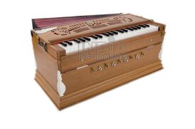 In India, our harmoniums are tuned to international concert pitch of a = 440 hertz. In Europe, however, they usually sound slightly higher at a = 441 to 442 Hertz due to the colder climate. The difference is small and not necessarily noticeable even to trained ears.