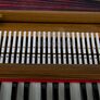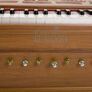The 42 keys have a tonal range of three and a half octaves. Each note is fitted with two reeds in middle and low octave (male / bass). They can be played separately or in combination, giving three different tonal colours. When using the octave coupler up to four reeds can be played simultaneously with just one key, creating a powerful, rich and carrying sound. However, the more reeds are used the more air needs to be pumped with the bellows. The multifold side bellows give you all possibilities of using air supply for dynamic artistic expression. One register stop produces a kind of tremolo sound. The level height of the keys can be adjusted.