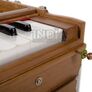 Total range of 3 1/2 octaves (= 42 notes), double reeds (male / bass), four register stops, one of them tremolo, five drone stops, lower octave coupler, 5-fold side bellows, adjustable keys, cabinet made of teak wood, wedges for easy opening, surfaces silk mat or high glossy polish, including bag.
