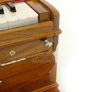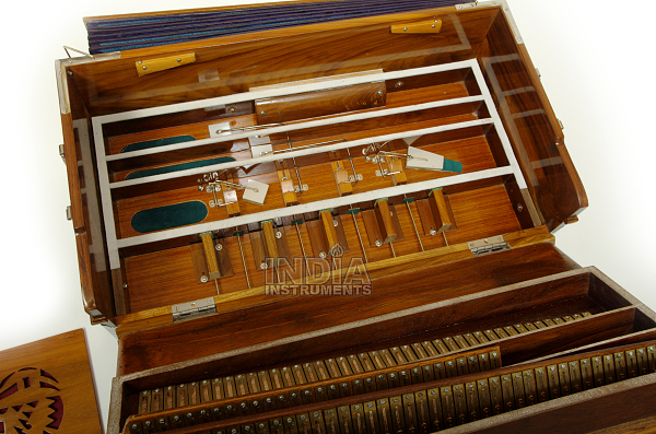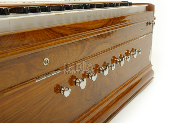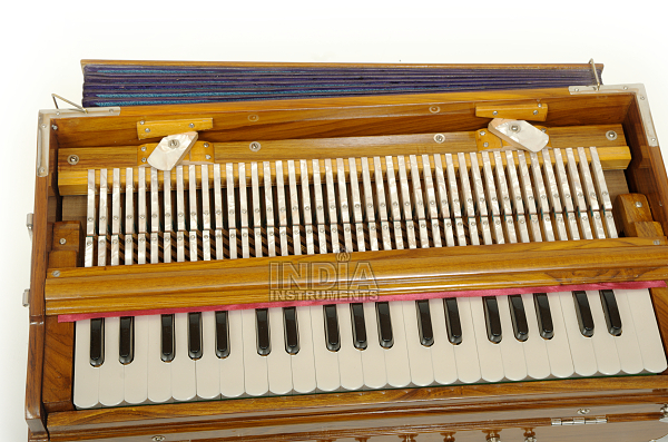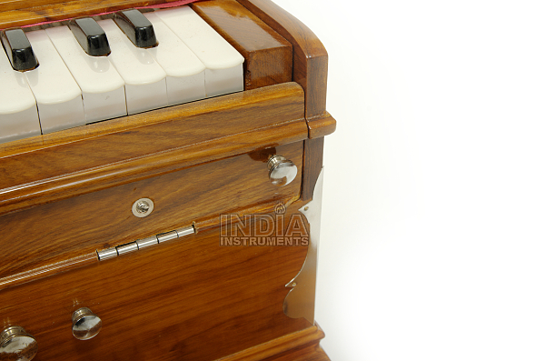 In India, our harmoniums are tuned to international concert pitch of a = 440 hertz. In Europe, however, they usually sound slightly higher at a = 441 to 442 Hertz due to the colder climate. The difference is small and not necessarily noticeable even to trained ears.