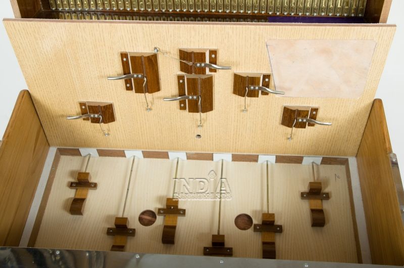 Unlike many scale-changer harmoniums the Paloma Maestro is not a touchy diva but is extremely good-natured. Its enormous sustain makes it child's play to produce an even sound stream or to play with fine nuances of volume. The absence of extras like scale changer and octave coupler reduces weight and makes it surprisingly sturdy. Thus you can easily travel with the Paloma Maestro if required. And if some maintenance is necessary, all reeds and the stop and drone slides are easily accessible thanks to the screwless folding mechanism.