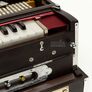 Superior workmanship makes this our top-of-the-line harmonium. The whole keyboard of three octaves can be shifted in half note steps from g sharp up to e (scale-changer) - which makes transposing child's play! Each note is fitted with three reeds in high, middle and low octave (female / male / bass). They can be played separately or in various combinations, giving many different tonal colours. When using the octave coupler up to six reeds can be played simultaneously with just one key, creating a particularly powerful, rich and carrying sound. However, the more reeds are used the more air needs to be pumped with the bellows. The multifold side bellows give you all possibilities of using air supply for dynamic artistic expression. The level height of the keys can be adjusted. The instrument can be folded into an integrated wooden case for safe carrying with one hand and storage at home. A special Paloma feature is the surface treatment with wax in order to enhance the beauty of the natural wood veining.