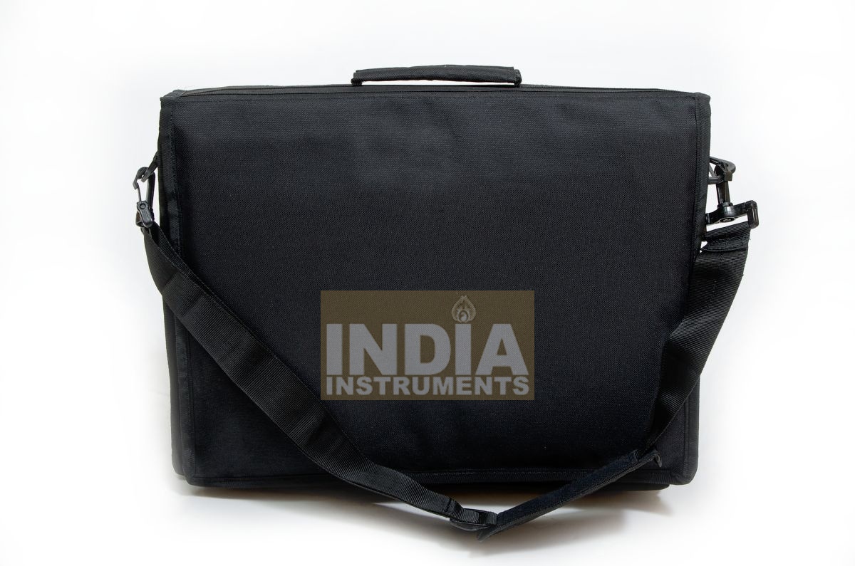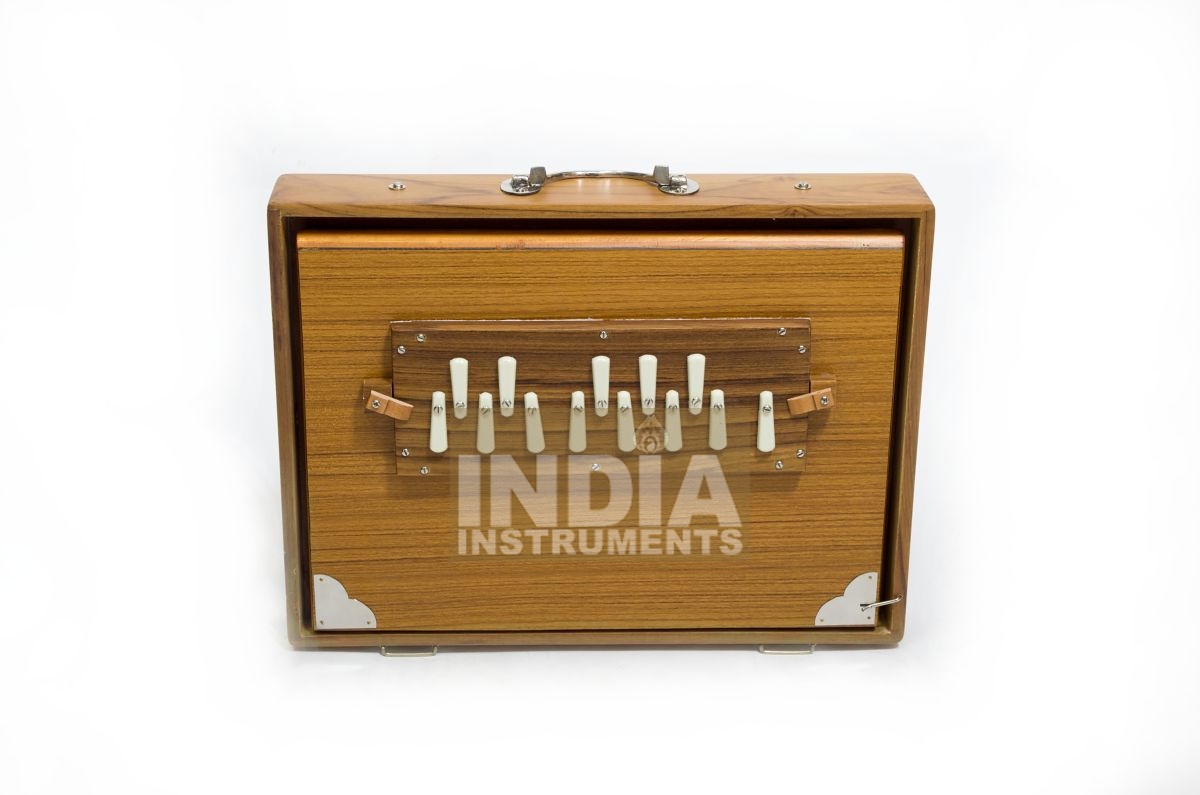 The large frame provides a much larger bellows volume as compared to smaller models, which permits an accurate dosing of air supply. In this way, the sound can be kept constant effortlessly even when three notes are played simultaneously. Additionally, the volume can be varied considerably wider and finer from evenly tender and low to constantly powerful loud. The larger resonating chamber provides moreover for a somewhat fuller overall sound. Despite its larger dimensions and heaviness, MKS shrutibox large can still be taken around without any difficulty. Only if you have to carry a lot of other stuff and if you are travelling by public transport or by foot, shape and weight might become inconvenient.