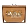 13 chromatically tuned notes from G to g (G2 to G3 in scientific terms); all notes tuned equally tempered to pitch a' (A4) = 440 hertz; frame made of solid teak wood; surfaces with silk mat synthetic varnish; side parts made of laminated wood; feet, handle and latch made of metall; valves made of plastic; bellows made of cardboard with leather blockings; including sturdy bag.