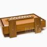 This shrutibox model has 13 chromatic notes from c to c' (C3 to C4 in scientific terms). Each of the twelve halftones occurs at least once in this range. To achieve a full sound, an additional fifth or fourth up or down can be played together with each note, offering multiple possibilities of tonics and harmonies.