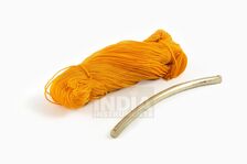 Fret silk is available in so-called bundles. One bundle contains enough material for binding at least all the frets of one sitar. Great care is recommended when unwinding the bundle, because the thread tends to get tangled easily and is very difficult to disentangle later on. The twirled single strands of our fret silk make very good snare threads for tanpuras, too.