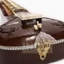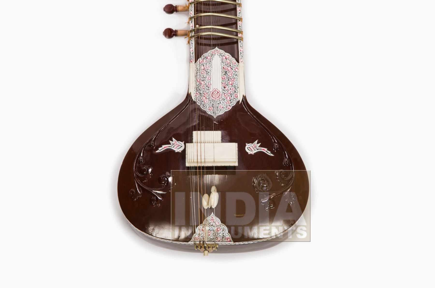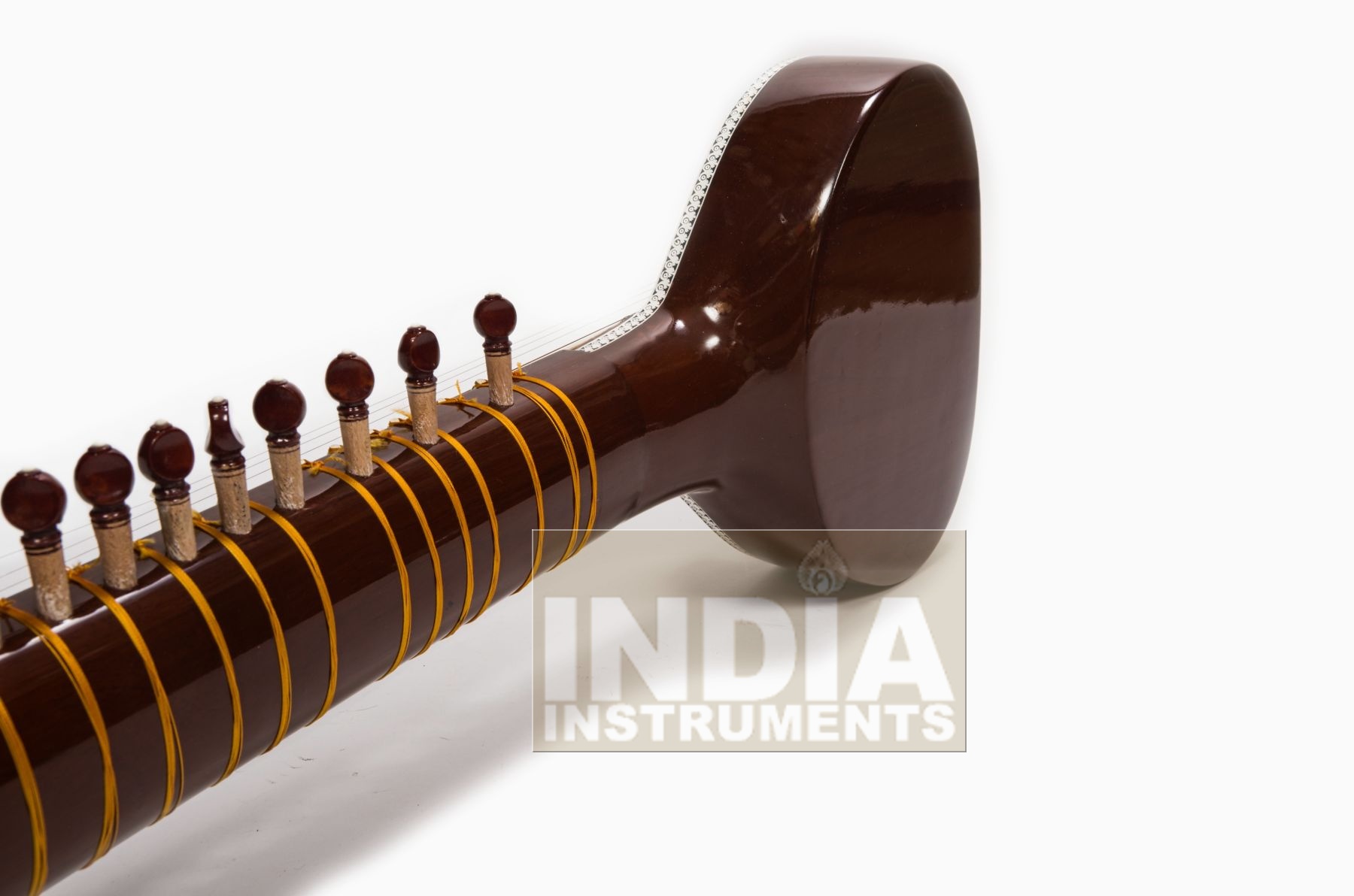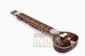 Compact and robust, with a flat wooden body and small pegbox - yet good quality and amazingly full sound. THE travel alternative to bulky and sensitive sitars with gourd resonator.