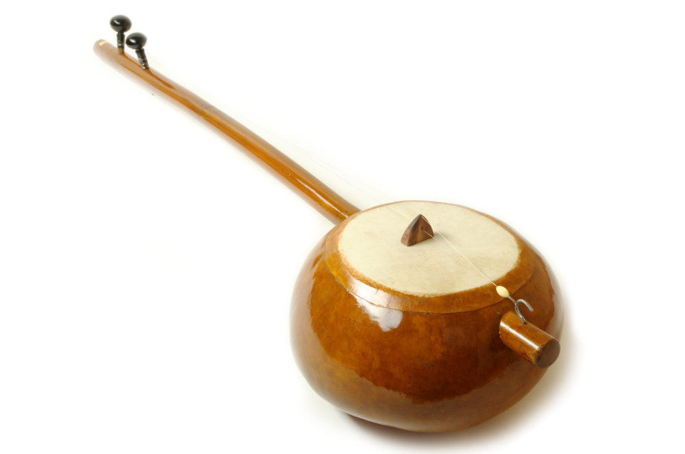 The North Indian dotara bhajan is a simple instrument with two strings. It is traditionally used by spiritual singers as an accompaniment to their devotional chants. Thanks to its large gourd resonator and goatskin cover, our North Indian dotara bhajan has a particularly fine, full and warm sound.
