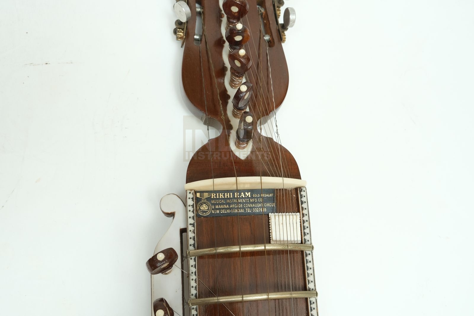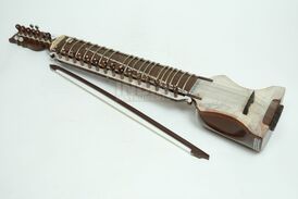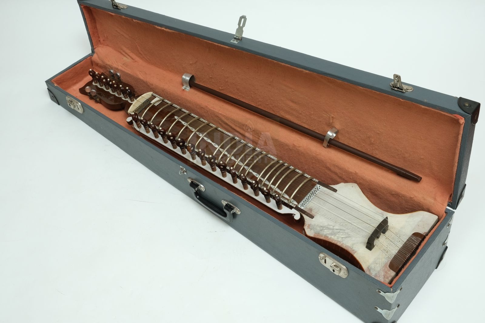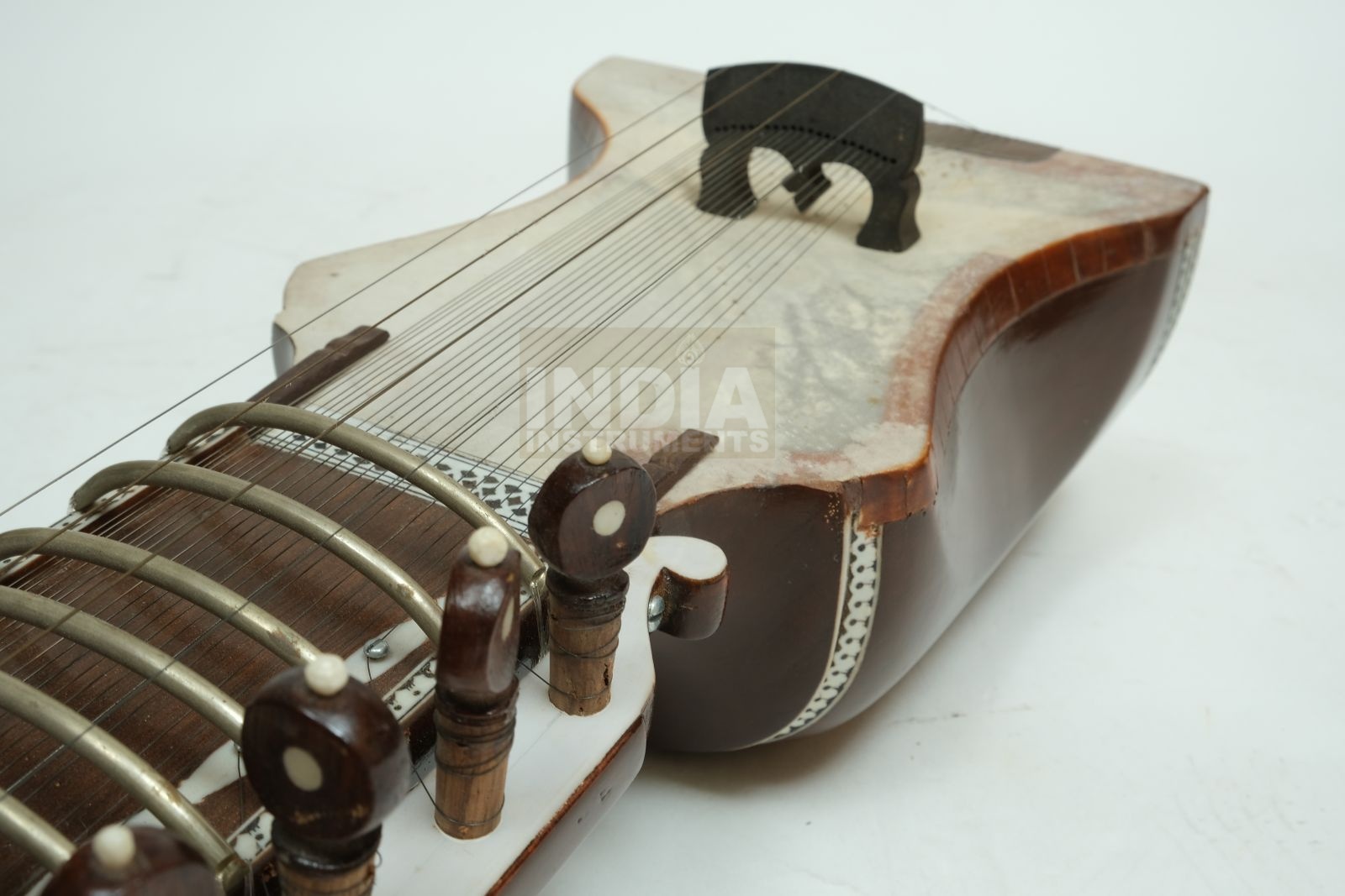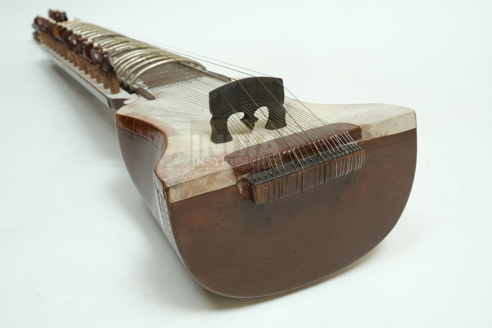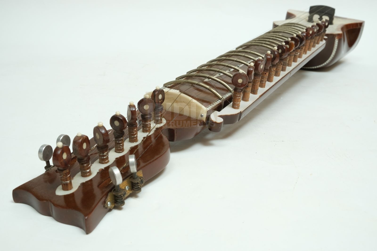 - 7 full-length resonance strings with wooden pegs at the top of the pegbox