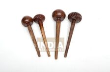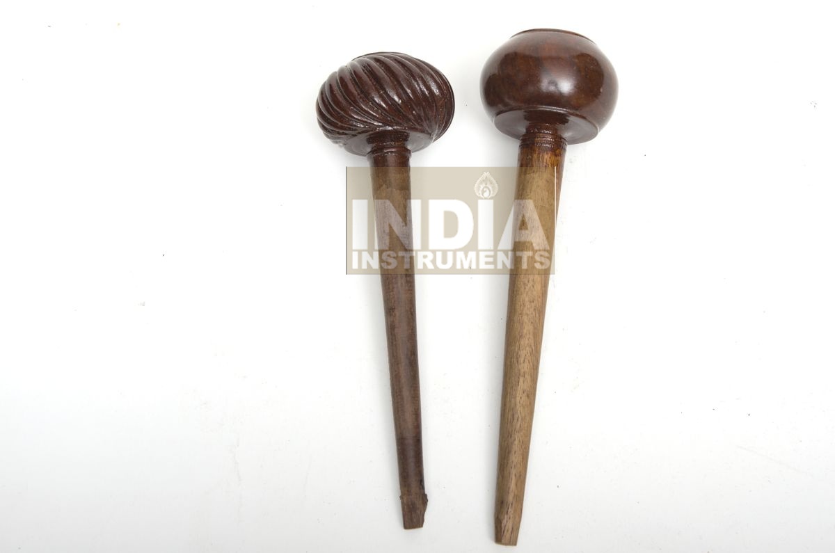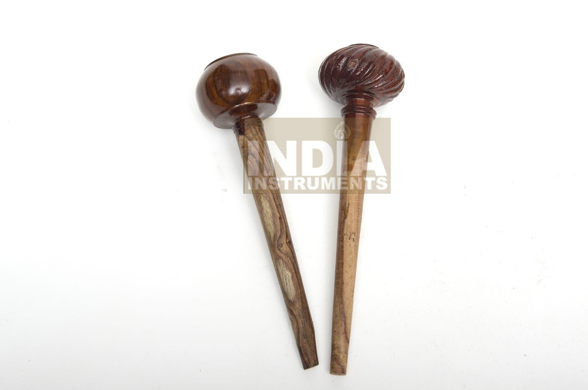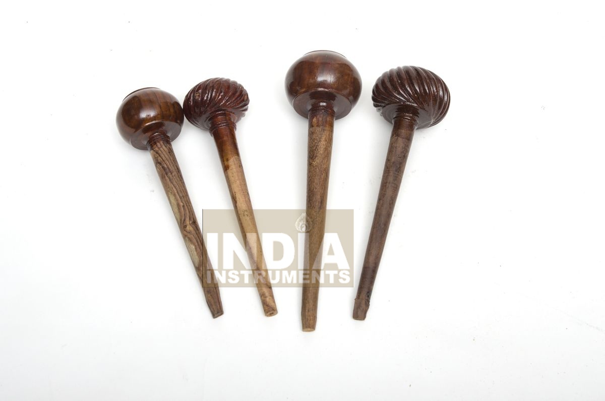 Our peg blanks for Tanpuras are made in one piece from hardwood. They consist of a conic bar, which is stuck inside the instrument, and a broad carved head, which is gripped for moving the peg. The different labellings refer to the shape of the head. The spiral peg has a spiral-shaped head and the plain peg's head is without decoration.