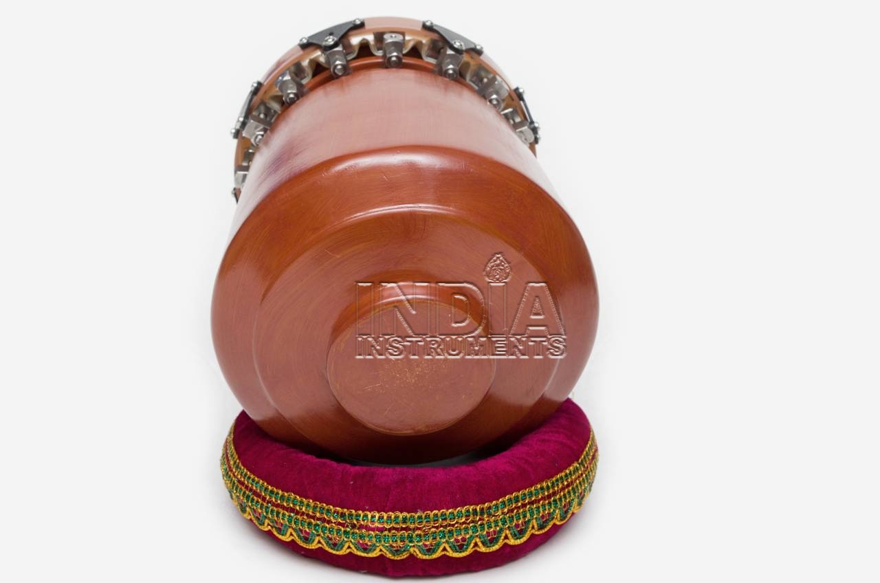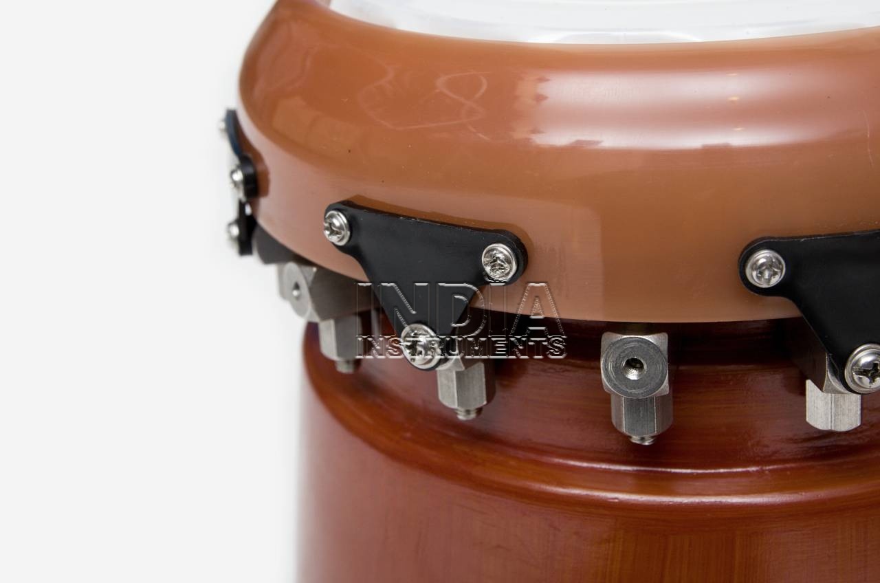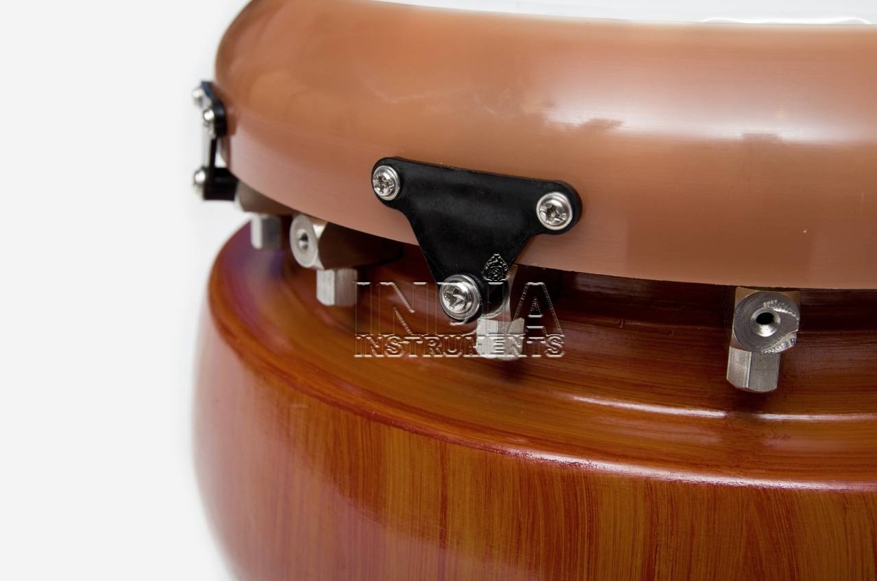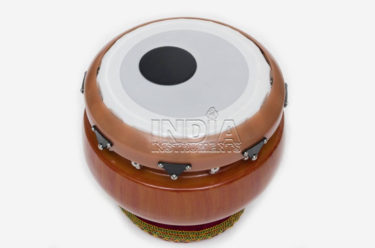 The synthetic skins are water-repellent and can be wiped with a wet cloth for cleaning. The sophisticated high quality clamping mechanism is easy to use and allows for a very accurate and durable tuning. If a skin is damaged or worn out after many years of playing, it can be replaced quickly and easily. The sound is clear and resonant, but lacks some of the finer nuances of good traditional tablas.