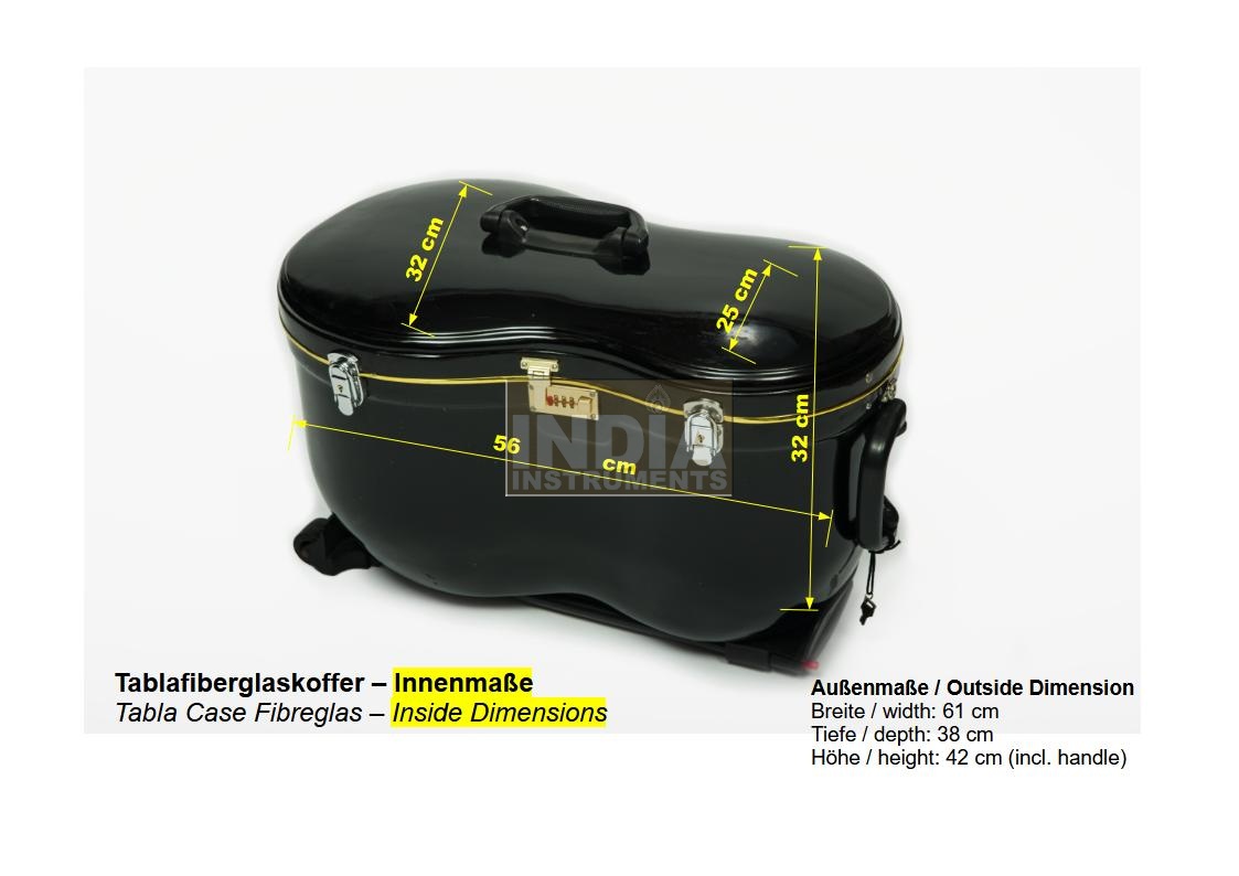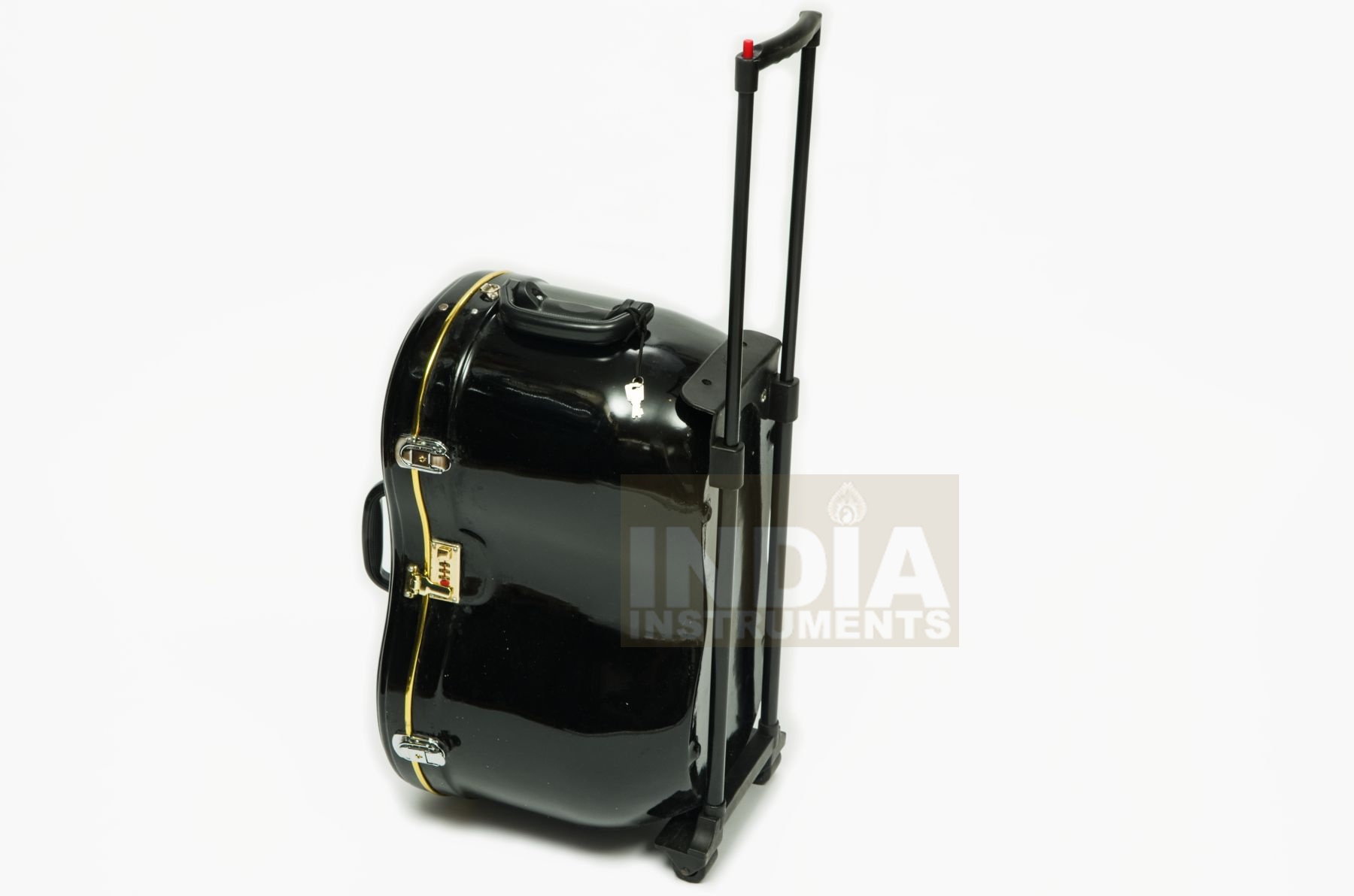 Fibreglass cases give the best possible mechanical protection and are the only cases which are safe for air travel. However, they are relatively expensive and heavy. Our fibreglass cases for tabla have a thick outer shell, wheels for rolling, thick inner padding and cloth lining. The fibreglass tabla case accomodates one tabla and one baya next to one another.