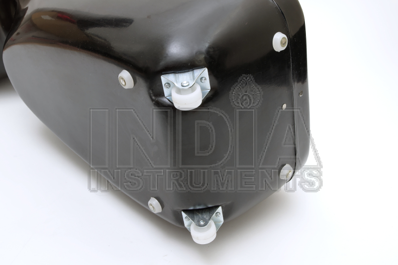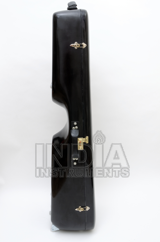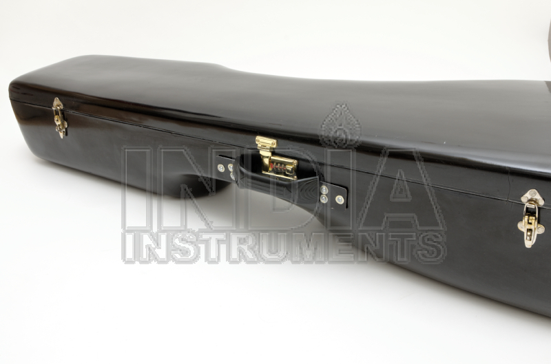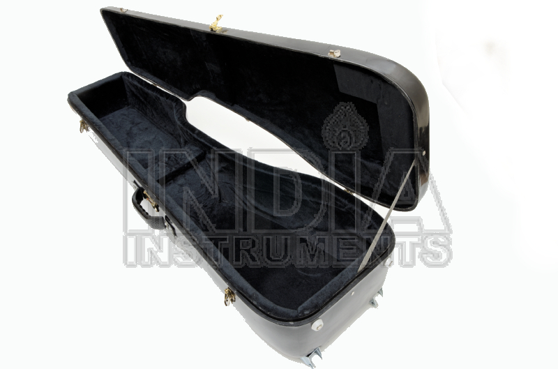 Fibreglass cases give the best possible mechanical protection and are the only cases which are safe for air travel. However, they are relatively expensive and heavy. Our fibreglass cases for sarod have a thick outer shell, wheels for rolling, thick inner padding and cloth lining.