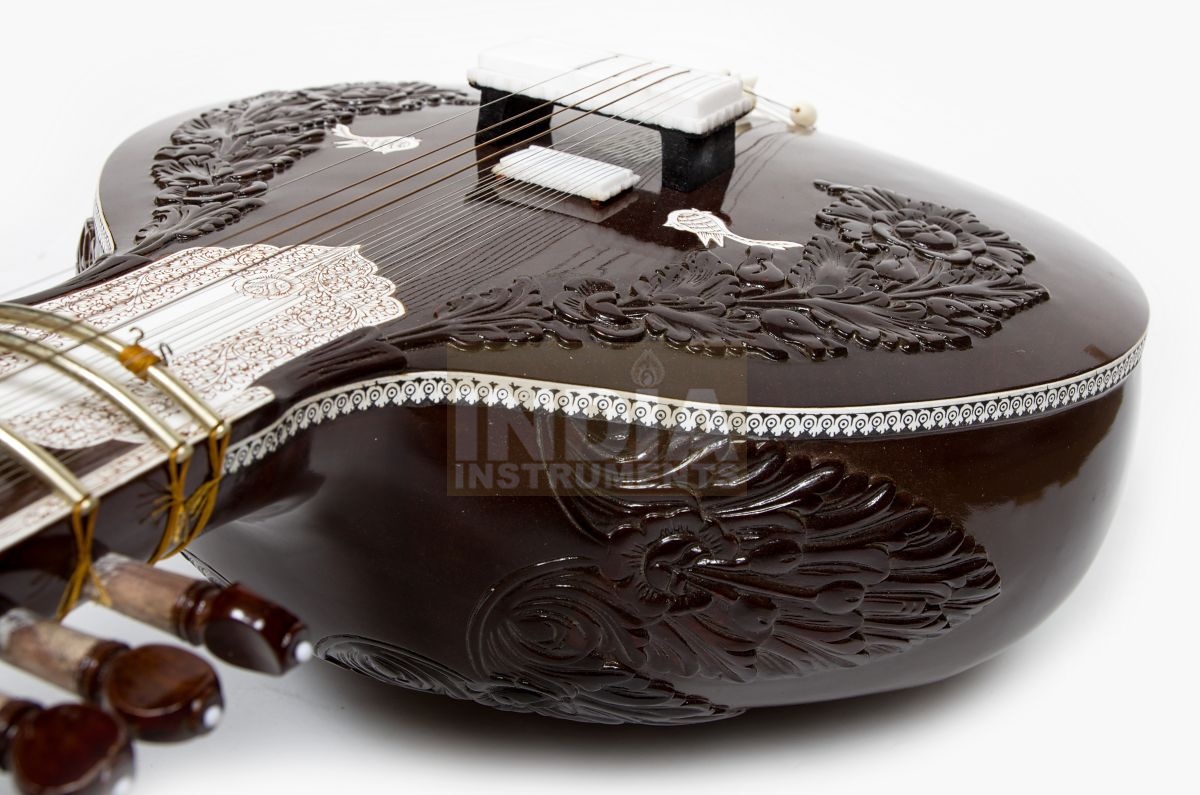 Surbahars are often built so large and heavy that they can only be held and played with great difficulty. Such oversized instruments scare off many who actually find the deep, meditative sound attractive. The great innovator Hiren Roy showed another way in the second half of the 20th century. His surbahars are structurally similar to his sitars and are dimensioned in such a way that they are relatively easy to hold and play. Despite the comparatively handy size, however, they have the typical full and majestic surbahar sound. Today, P. & Brothers builds surbahars in exactly this style. Wonderful for those who are already familiar with sitar and now want to go deeper.